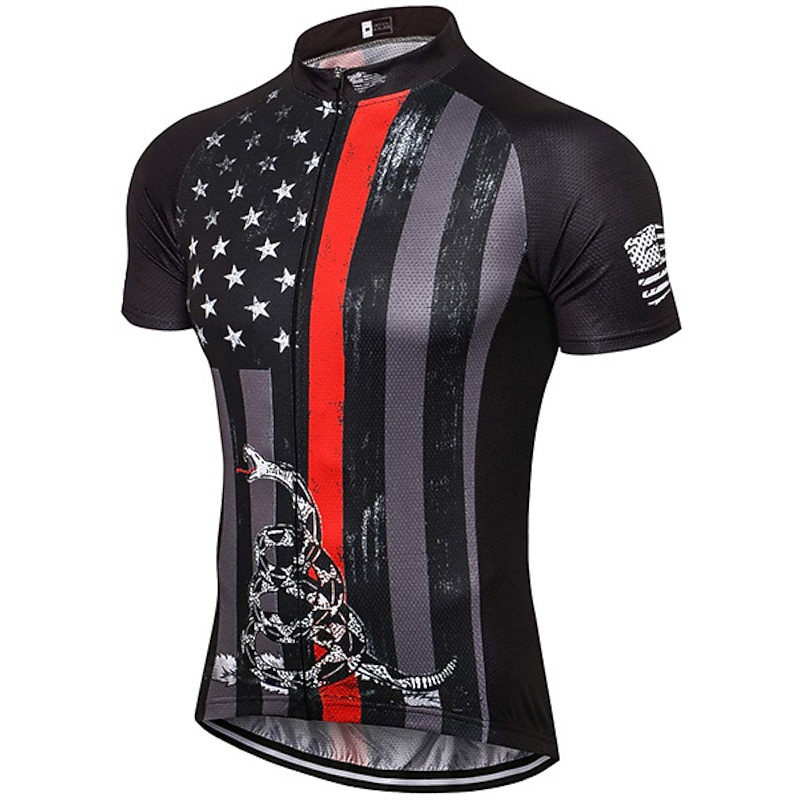 Men's Cycling Jersey I LOVE USA Pattern Short Sleeve Bike Jersey Top with 3 Rear Pockets Quick Dry Lightweight Soft Wicking Grey Sports Clothing Apparel 18