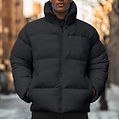 More information about Men's Winter Coat Puffer Jacket Pocket Polyster Top Christmas Office / Career Street Regular Sports Streetwear Cool Fall Winter Plain Black White Pink Blue Puffer Jacket