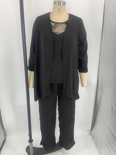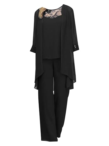 Women's Chiffon Pants Suits 3 Pieces Outfit Sets Wedding Party Outfit Evening Dress Suit 2