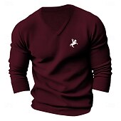 More information about Men's Pullover Sweater Jumper V Neck Casual Party Evening Wear Daily Embroidered Knitting Warm Long Sleeve Fall Winter Wine Black Dark Navy