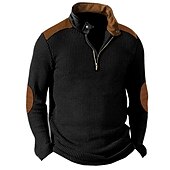 More information about Men's Waffle Shirt T Shirt Tee Top Long Sleeve Shirt Long Sleeve Standing Collar Spring & Fall Color Block Fashion Designer Basic Patchwork Vacation Street Going out Black Navy Blue khaki Top Tee