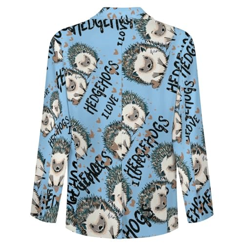 I Love Hedgehogs Men's Suits Dress Business Formal Suit Print Jackets Coat for Wedding Party 6