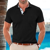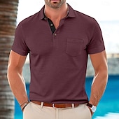 More information about Men's Polo Golf Shirt Business Casual Classic Short Sleeve Fashion Solid Color Buttons Pocket Summer Spring Regular Fit Black White Almond Burgundy Blue Green Polo