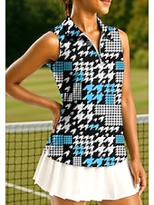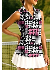 More information about Women's Geometric Houndstooth Tops Sport Shirt Golf Polo Shirt Tennis Shirt Sleeveless Zipper High Elasticity Moisture Wicking Breathable Tennis Pickleball Running Turndown Zip Collar Shirt Tank Top
