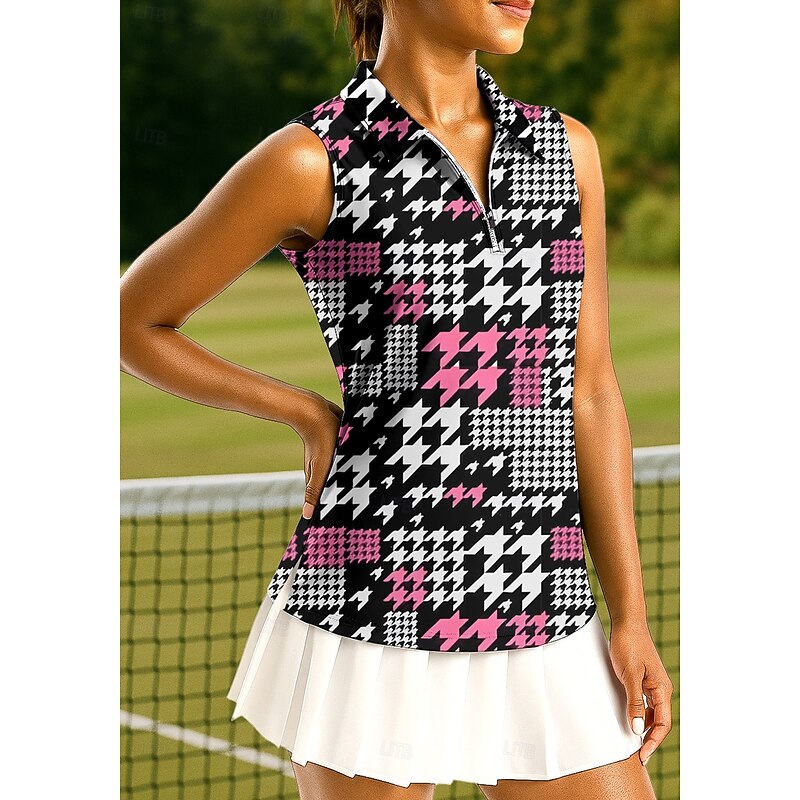 HOT ! Women's Geometric Houndstooth Tops Sport Shirt Golf Polo Shirt Tennis Shirt Sleeveless Zipper High Elasticity Moisture Wicking Breathable Tennis Pickleball Running Turndown Zip Collar Shirt Tank Top