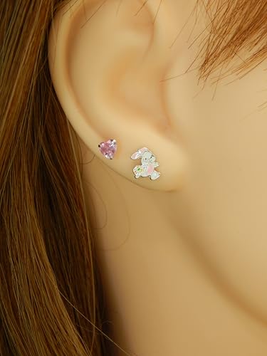925 Sterling Silver Easter pink white Bunny Rabbit Small Stud Earrings 28242 5