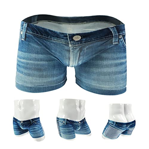 HOT ! Men Big Pouch Ice Silk 3D Denim Printed Shorts Fake Jean Underwear Boxer Stretch Briefs Cow Boy Underpants Trunks