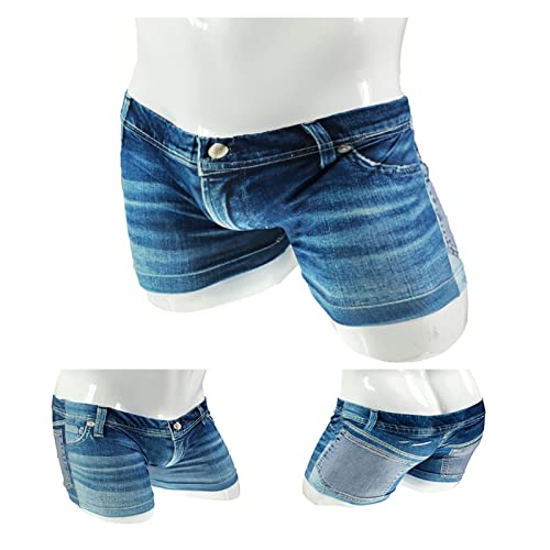 More information about Men Big Pouch Ice Silk 3D Denim Printed Shorts Fake Jean Underwear Boxer Stretch Briefs Cow Boy Underpants Trunks