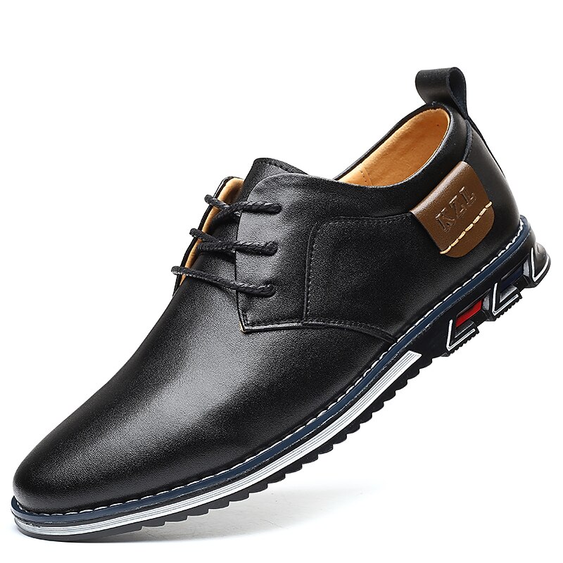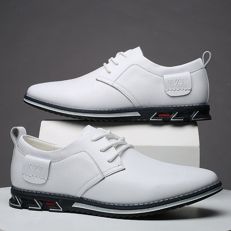Highlights [Fabric and Material] : These men's casual lace-up shoes are crafted from premium faux leather, offering a smooth and polished finish in a sophisticated navy blue color. The high-quality material ensures durability and a stylish appearance. [Style and Fit] : Featuring a classic round toe design, these shoes provide a timeless look combined with neatly stitched detailing. The structure offers a comfortable and breathable fit, suitable for extended wear throughout any season. [Design Highlights] : The standout design elements include a unique tread pattern on the outsole, providing enhanced grip and stability. The contemporary dynamic design of the sole, with contrasting colors and patterns, adds a modern edge to the traditional silhouette. [Occasions] : Perfect for both formal and casual occasions, these shoes can be worn for daily activities or special events such as parties and evening gatherings. Their versatile style makes them a valuable addition to any wardrobe. [Size Range] : Available in a wide range of sizes from EU 38 to EU 48 and UK sizes, these shoes are designed to cater to a variety of foot sizes, ensuring the perfect fit for many customers.