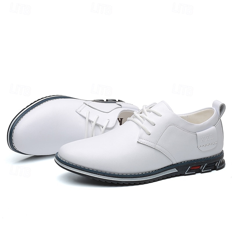 HOT ! Men's Blue Casual Faux Leather Lace-Up Shoes - Comfortable Sole with Non-Slip Grip