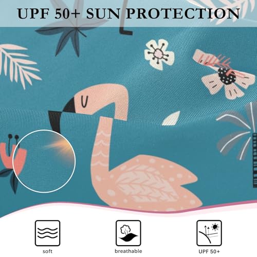 More information about Girls Long Sleeve One Piece Swimsuits UPF 50+ Rashguard Bathing Suits Light Pink Flamingo Tropical Plant Fruit Blue