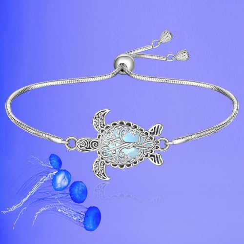 HOT ! Turtle Bracelet Moonstone Tree of Life Sea Turtle Bracelet for Women Sterling Silver Adjustable Ocean Beach Hawaiian Sea Jewelry Christmas Birthday Gifts