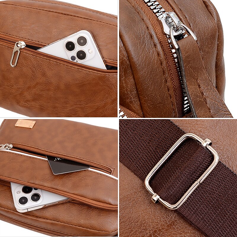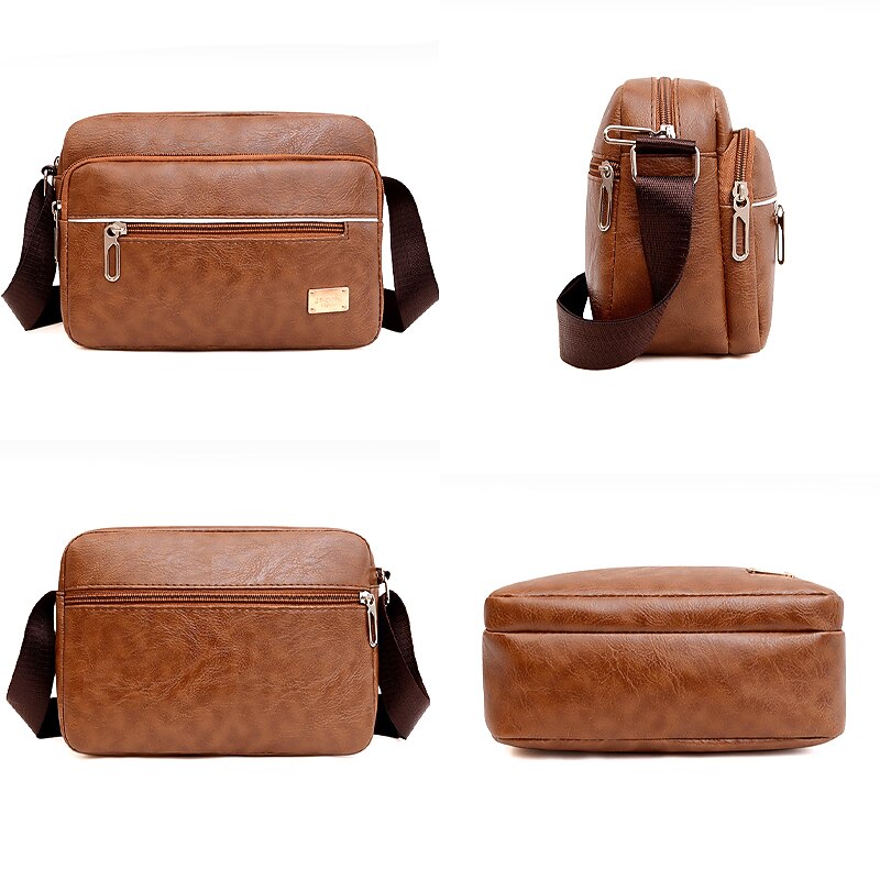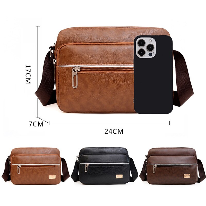 More information about Men's Crossbody Bag Shoulder Bag Satchel Messenger Bag PU Leather Outdoor Daily Zipper Large Capacity Lightweight Durable Solid Color dark brown Yellow brown Black