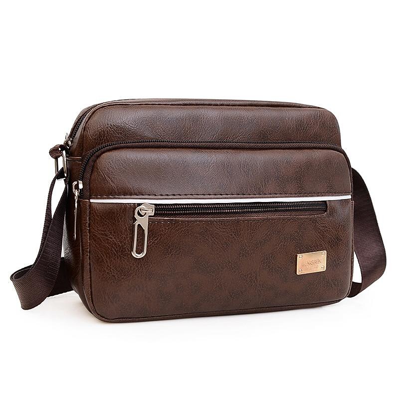 Men's Crossbody Bag Shoulder Bag Satchel Messenger Bag PU Leather Outdoor Daily Zipper Large Capacity Lightweight Durable Solid Color dark brown Yellow brown Black 11