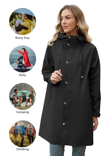 Zando Long Packable Rain Jacket Women Waterproof - Raincoat for Women Rain Coat with Hood Lightweight Outdoor Windbreaker 6
