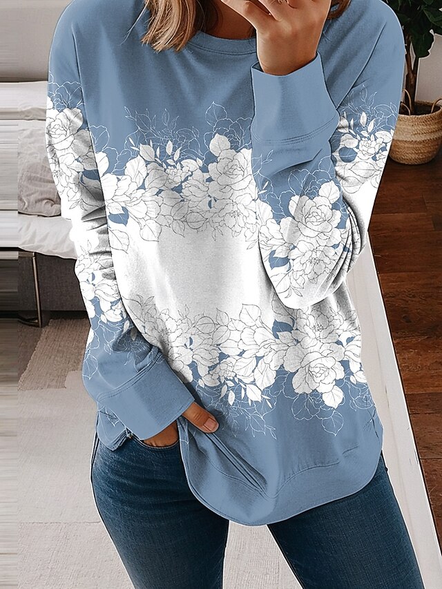 More information about Women's Sweatshirts Floral Graphic Casual Long Sleeve Crew Neck Regular Tops Street Casual Holiday Print Blue Purple Green Khaki Spring Fall Winter