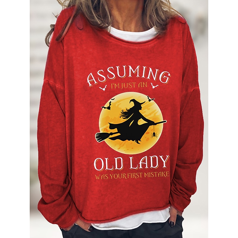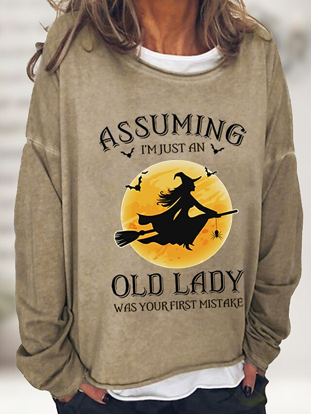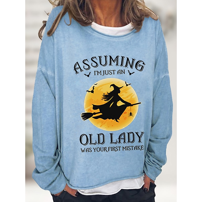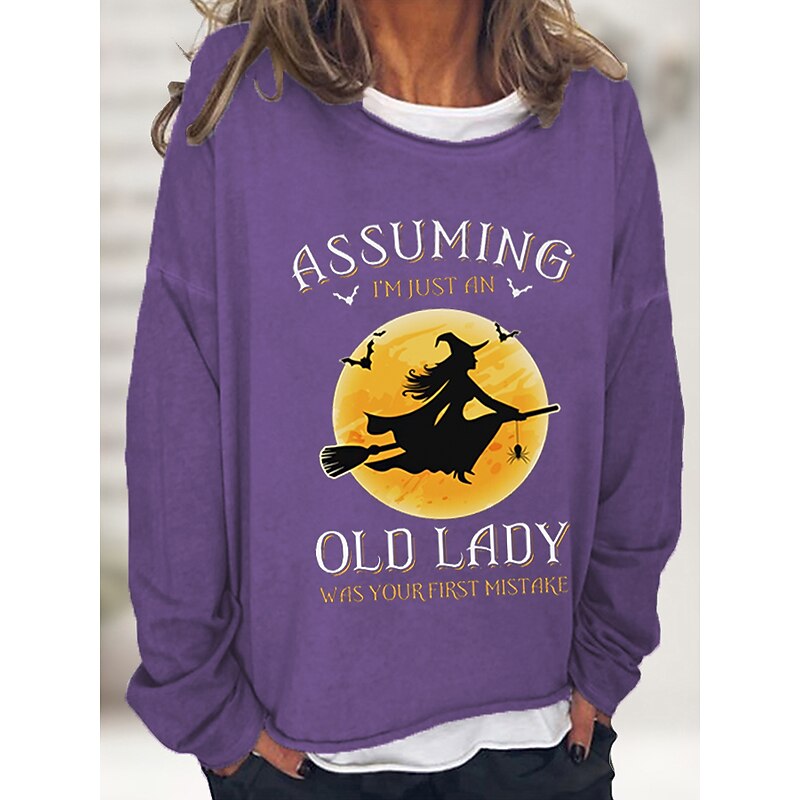 Halloween Women's Pullover Cotton Blend Letter Casual Print Basic Casual Loose Fit Crew Neck Long Sleeve Micro-elastic Spring Fall Fall & Winter 13