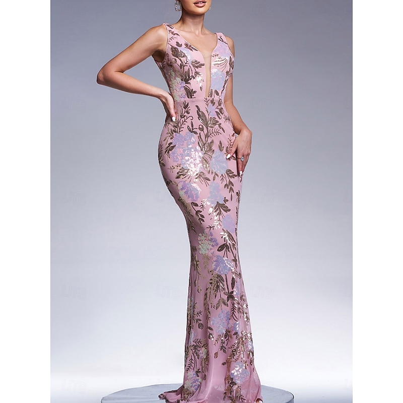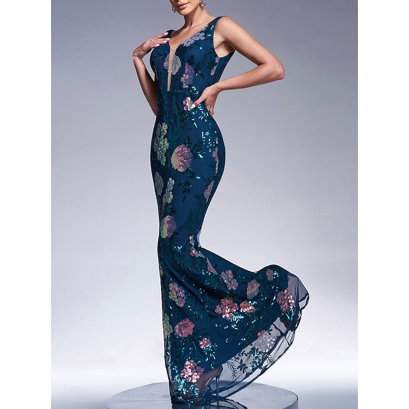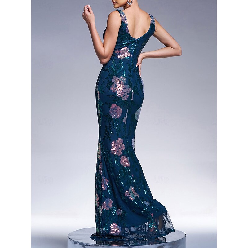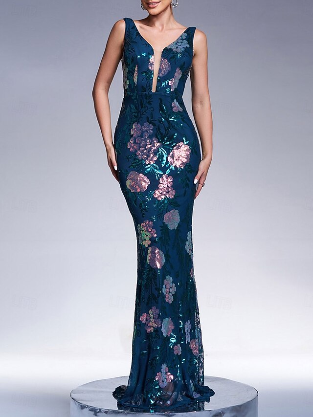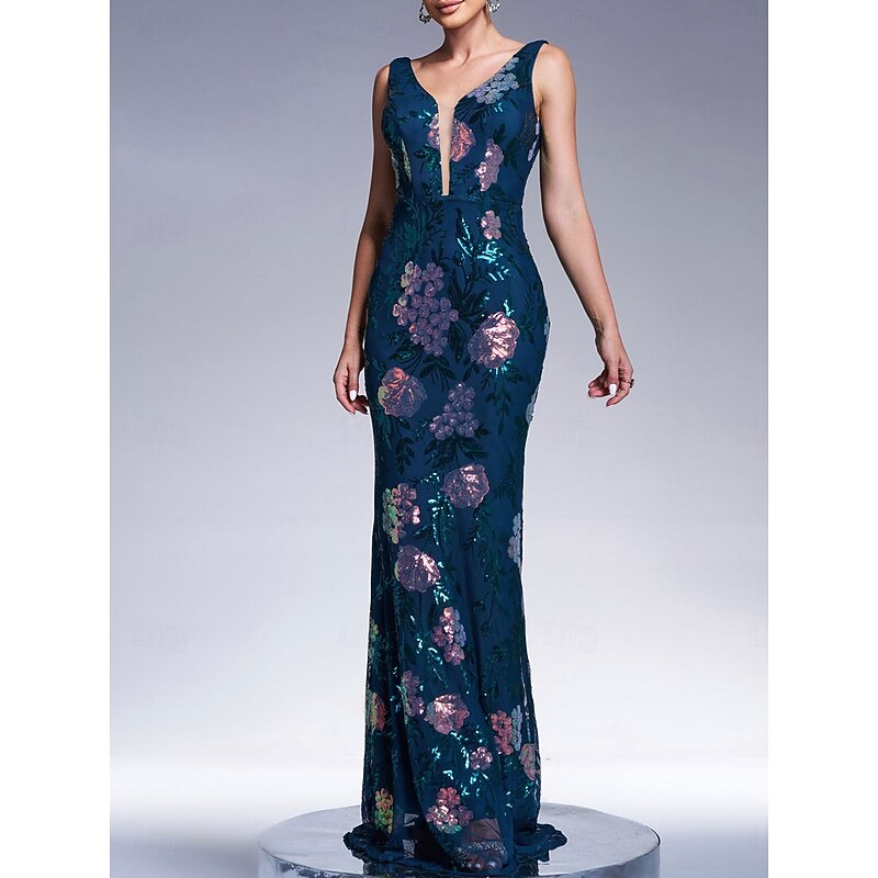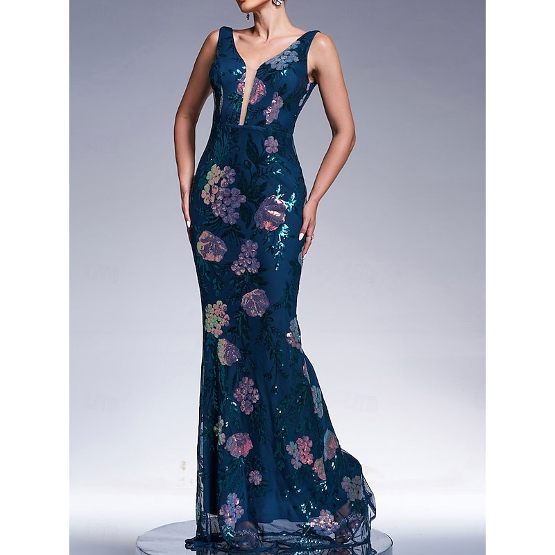 Mermaid / Trumpet Evening Gown Elegant Dress Formal Wedding Floor Length Sleeveless V Neck Lace with Sequin 1