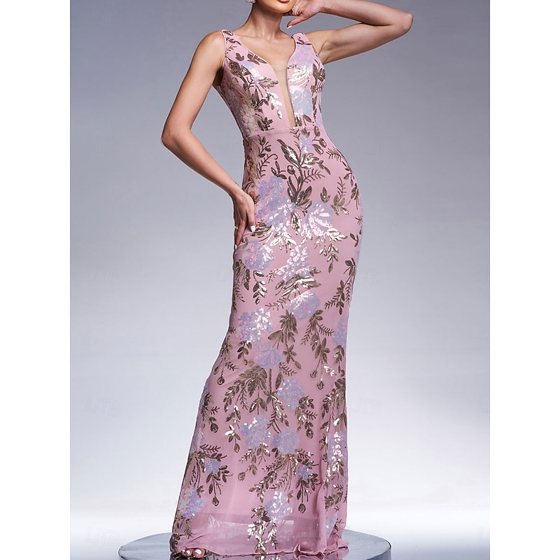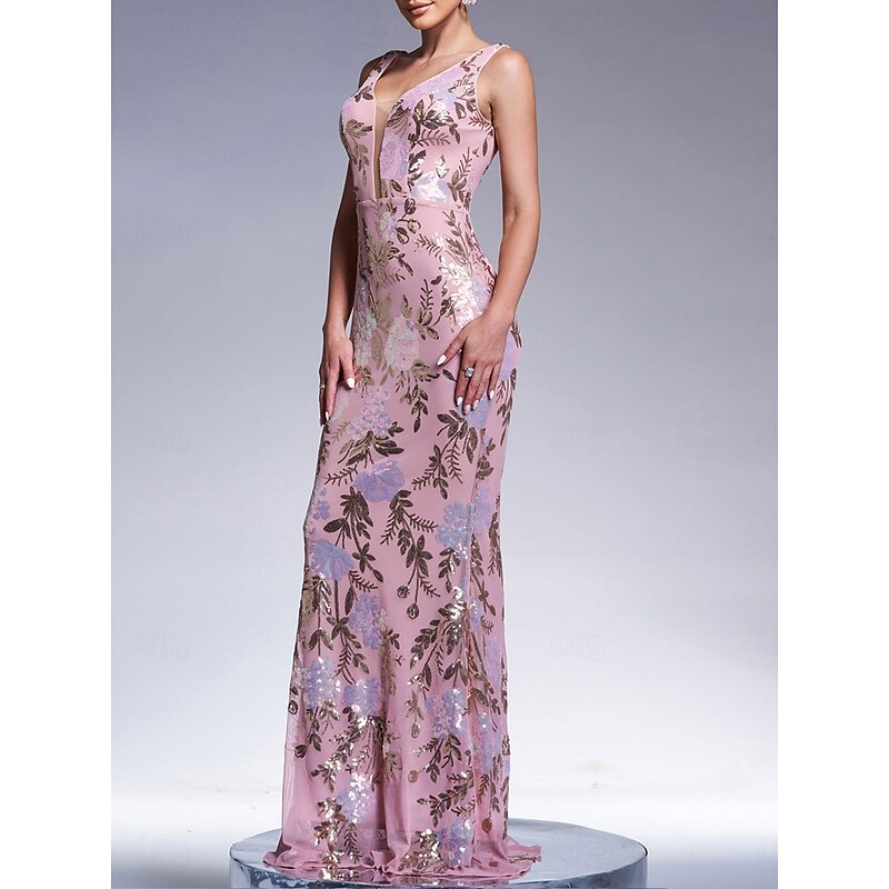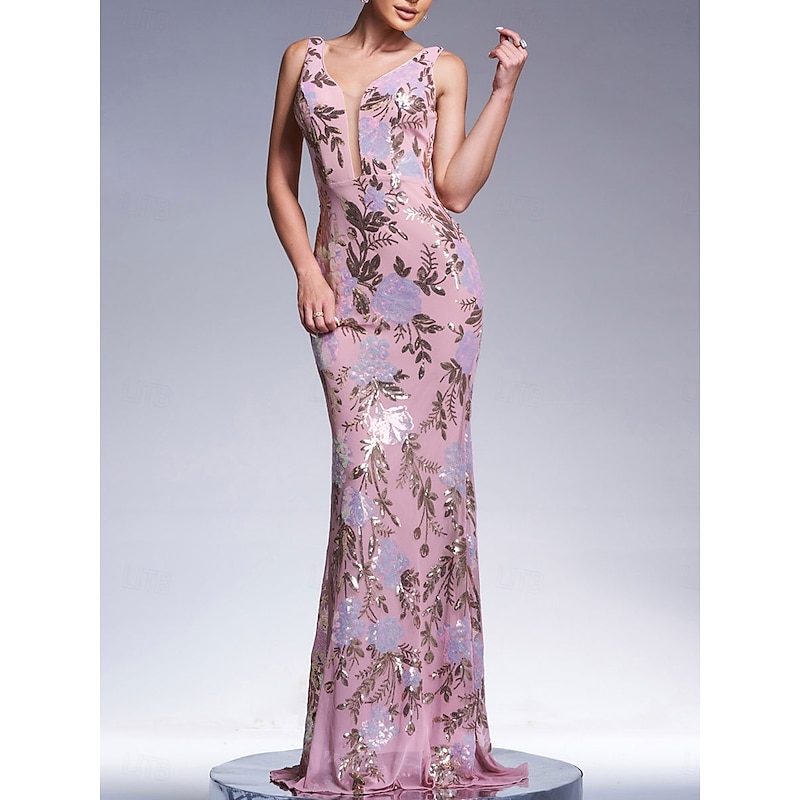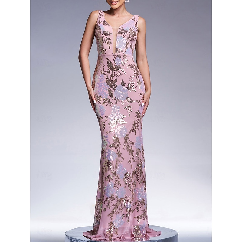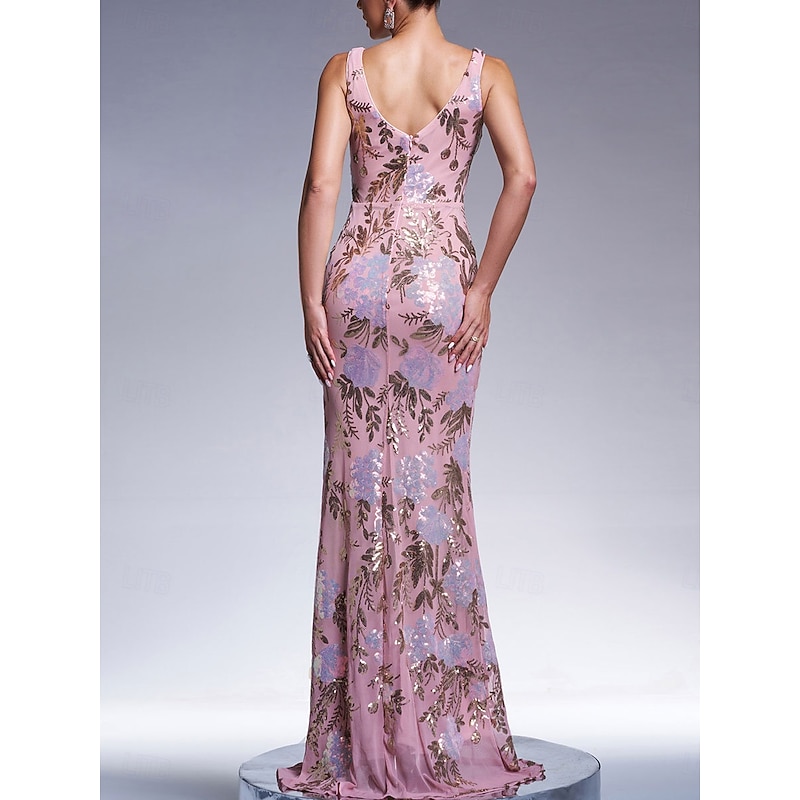 Mermaid / Trumpet Evening Gown Elegant Dress Formal Wedding Floor Length Sleeveless V Neck Lace with Sequin 1