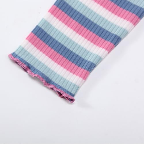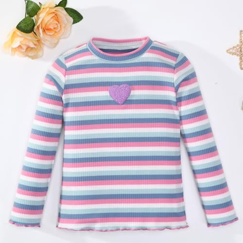 OPAWO Girls Long Sleeve Shirts Ribbed Knit Lettuce Trim Tee Shirt Tops, Little Girl Striped Blouse Undershirts Size 3-9 Years 7