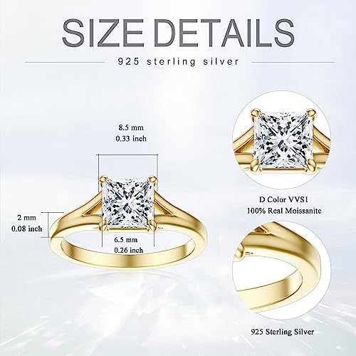 Moissanite Engagement Rings for Women, Princess Cut 1.5 Carat(CTW) Moissanite Rings Wedding Engagement Anniversary Bridal Ring Bands For Women Yellow Gold S925(8) 3