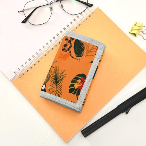 Animals Flowers Wild Orange Kids Wallet for Boys Girls Trifold Sport Outdoor Wallets for Teen Children Youth Wallet with Zippered Coin Pockets Card Holders Front Pocket Wallets with Magic Sticker 7