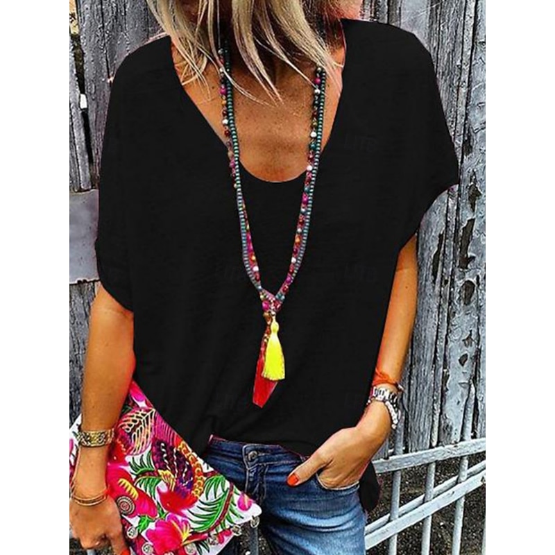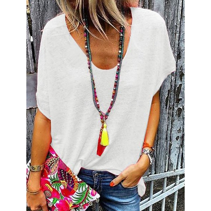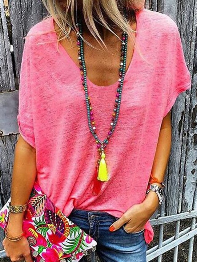 More information about Women's T Shirt Solid Color Plain Fashion Stylish Classic Short Sleeve V Neck Regular Tops Daily Weekend Black White Pink Gray Summer Spring