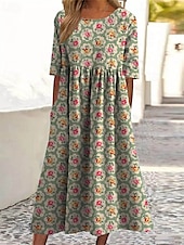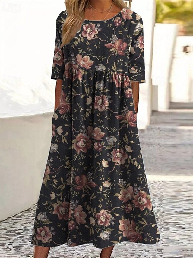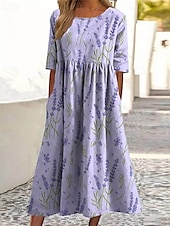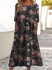 More information about Women's Midi Dress Casual Dress Summer Dress Fashion Modern Daily Beach Weekend Regular Fit Flower Half Sleeve Crew Neck Black Purple Green Spring Fall