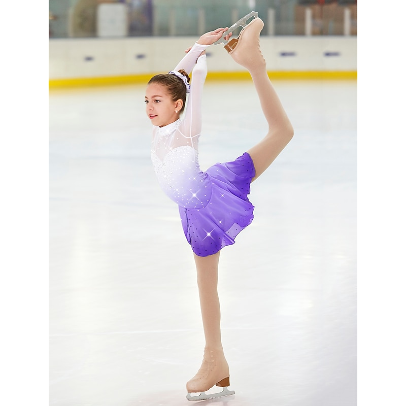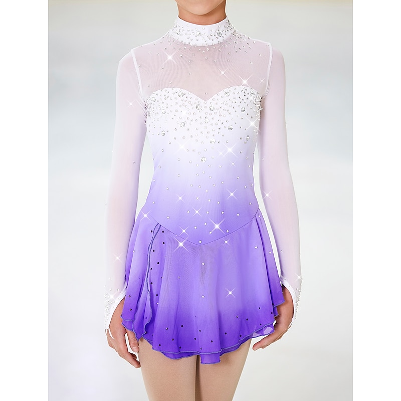 More information about Figure Skating Dress Women's Girls' Ice Skating Dress Outfits Purple Halo Dyeing Spandex High Elasticity Competition Skating Wear Handmade Crystal / Rhinestone Long Sleeve Ice Skating Figure Skating
