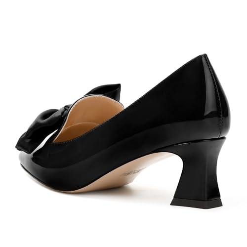WAYDERNS Womens Slip On Solid Square Toe Bow Patent Casual Dating Kitten Low Heel Pumps Shoes 2 Inch 5