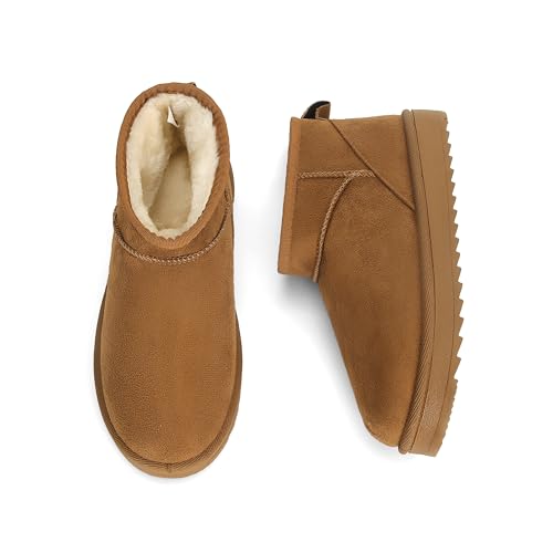 Platform Fur Boots for Women Classic Snow Low Boots Suede Leather Ankle Booties Warm Winter Mini Platform Boot Faux Fur Lining Shoes for Indoor Outdoor 7