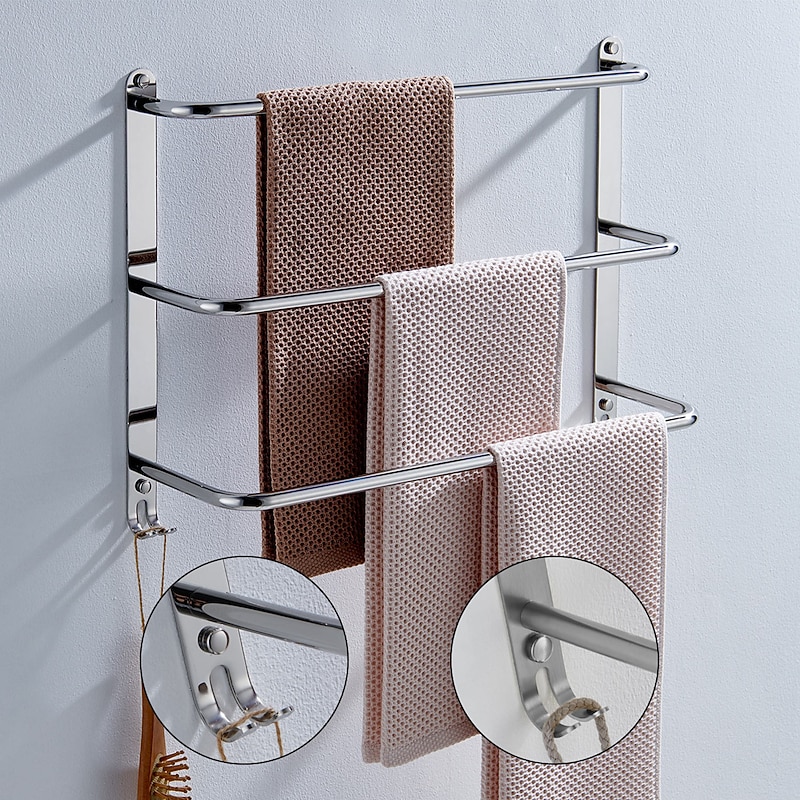 Wall Mounted Towel Rack,Stainless Steel 3-TierTowel Bar Storage Shelf for Bathroom 60cm Towel Holder Towel Rail Towel Hanger 5