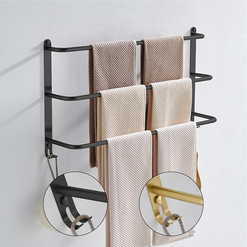 Highlights Introducing our top-quality Bathroom Hardware, made with high-quality metal and professional technology for the ultimate experience. Our main features include: 1. Made from 304 stainless steel, ensuring the best of formal material testing. 2. Strong corrosion resistance means no rusting, ensuring longevity of over 20 years! 3. Our three-layer design provides a large capacity for your bathroom essentials. 4. Choose from a wide range of colors and styles, with or without hooks. 5. Our Bathroom Hardware is eco-friendly, promoting health and safety for your family. Our product boasts 304 stainless steel, with high hardness, for durability you can rely on. The three-layer towel rack provides strong bearing force, ensuring a reliable and long-lasting addition to your bathroom. Our 60CM bar is available in many colors, with the option of hooks or without. With accessories that are complete and easy to install, our Bathroom Hardware is the perfect addition to any bathroom.