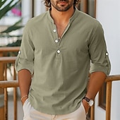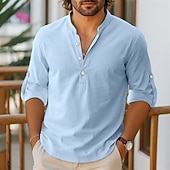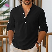 More information about Men's Shirt Linen Shirt Popover Shirt Summer Shirt Beach Shirt Solid Color Vacation Holiday Black White Pink Blue Long Sleeve Henley Clothing Apparel