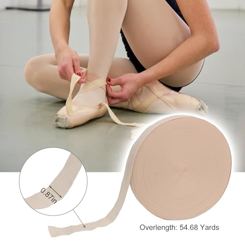 HOT ! 54.7 Yards Ballet Elastic Pointe Shoe Ribbons Roll, 7/8" Wide Stretch Satin Ribbon Roll, Minimalist Ballet Elastic Strap Stretch Ribbon for Women Girl Ballet Shoe Accessories, Ballet Pink