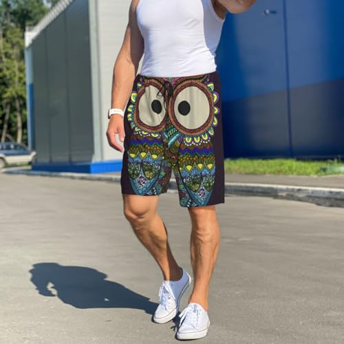 Boho Owl Print Men’s Sleep Shorts Bottoms Soft Comfy Pajama Wear Pants With Drawstring Pockets 6