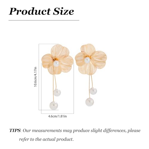 More information about Gold Flower Earrings for Women Big Statement Dangle Earrings Boho Long Drop Pearl Floral Petal Earring Prom Wedding Jewelry Gifts