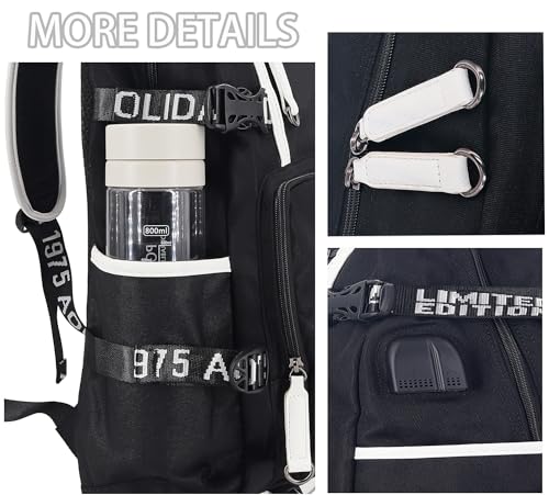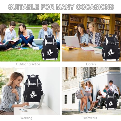 Anime Luminous Backpack 20L Nylon Large Capacity Travel Backpack Black Laptop Backpack Rucksack with USB Charging Port & Headphone Port 6