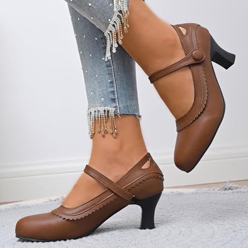HOT ! ZSpzx Heeled Sandals for Women 2025 Chunky Heels Closed Toe Backless Block Mary Jane Sandal with Adjustable Strap Ladies Comfortable Summer Orthopedic Dressy Wedding Shoes for Bridal Evening Cocktail