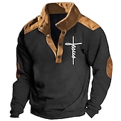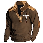 More information about Men's Graphic Prints Faith Sweatshirts Sweatshirt Pullover Long Sleeve Sweatshirt Stand Collar Daily Casual Vintage Retro 3D Print Vacation Going out Streetwear Buttons Spring & Fall