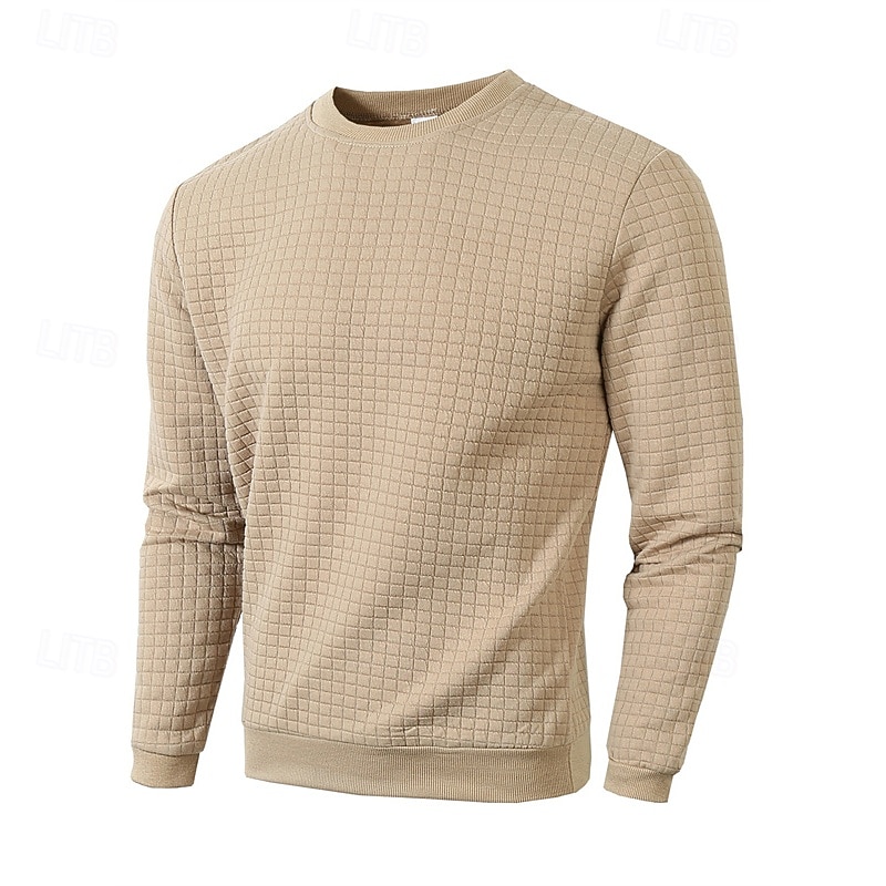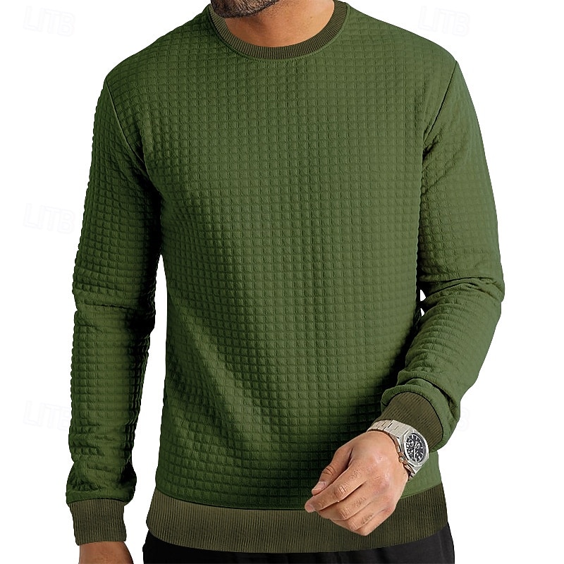 More information about Men's Sweatshirt Waffle Sweatshirt Black White Army Green Khaki Dark Gray Crew Neck Plain Ribbed Textured Knit-texture Sports & Outdoor Daily Holiday Polyester Streetwear Basic Casual Spring & Fall