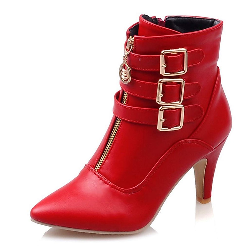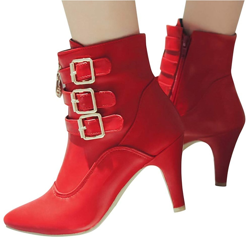 HOT ! Women's Fashion High Heel Ankle Boots with Buckles and Zipper – Stylish Faux Leather Stiletto Boots for Fall and Winter