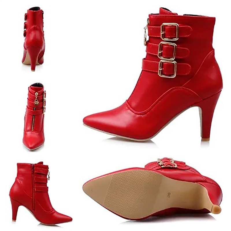 Women's Fashion High Heel Ankle Boots with Buckles and Zipper – Stylish Faux Leather Stiletto Boots for Fall and Winter 10