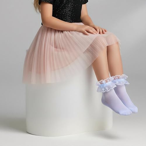 • Adorable and Stylish Design: The big and full double-layer ruffled lace cuff, made from shimmering organza material, toddler ruffle socks add a touch of elegance and romance to any outfit. These ruffle socks toddler are perfect for matching with fancy dress shoes, Mary Janes, or sneakers. The girls ruffle socks 6-8 years old increase contact with the legs, avoiding any discomfort or traces left around the ankles.