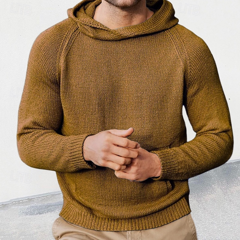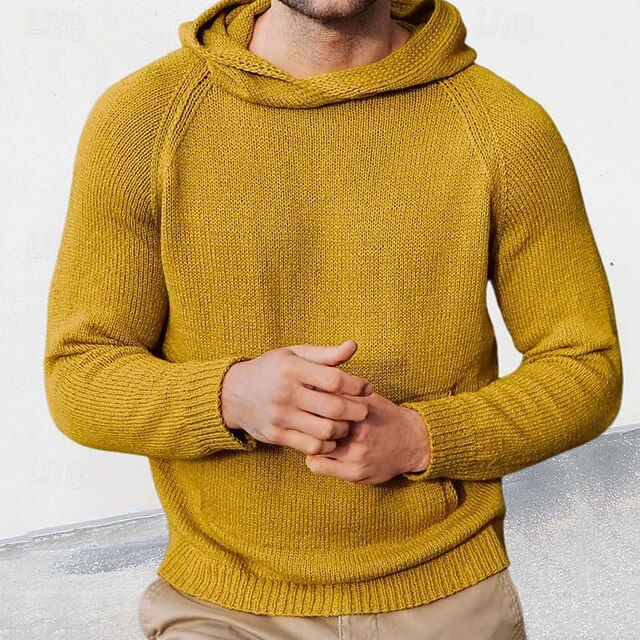 More information about Men's Pullover Sweater Jumper Knit Sweater Ribbed Knit Regular Tops Knitted Plain Hooded Fashion Basic Vacation Daily Wear Clothing Apparel Fall Winter Yellow Brown M L XL