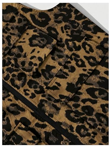 Men's Leopard Print Cargo Vest Coat Vintage Cheetah Travel Hiking Safari Vest Streetwear with Flap Pockets 5