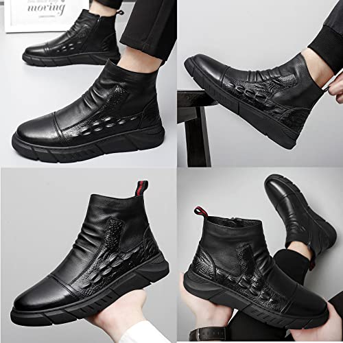 IGZBIBG Men's Print Genuine Leather Ankle Bootsm,Side Zipper High-topFashion Boots,Casual Non-SlipWarmFleece Boots 6