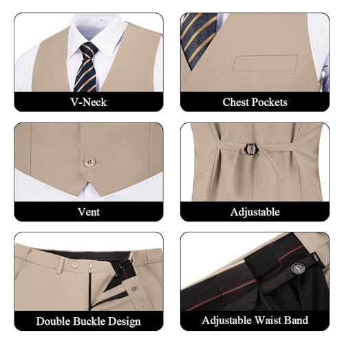 Men's Suit 2 Pieces Suit Vest Pants Set,Slim Fit Formal Bussiness Wedding Prom Suits for Men 3