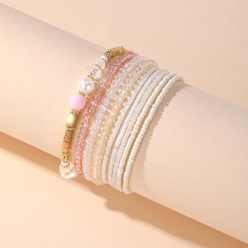 MengPa Beaded Bracelets for Women Trendy Stacks Boho Bead Bracelet Pack Friendship Jewelry 7