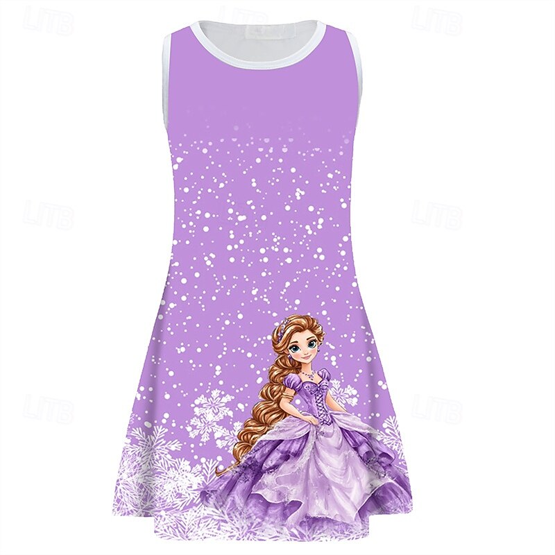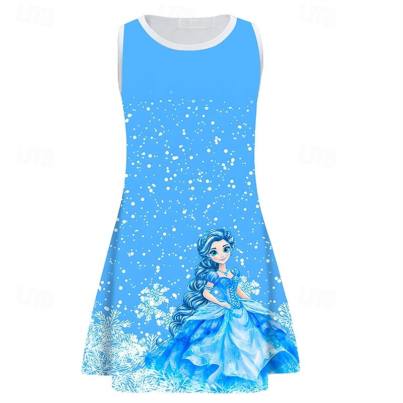 More information about Girls' 3D Cartoon Snowflake Dress Sleeveless Summer Spring Vacation Daily Holiday Princess Beautiful Sweet Kids 4-12 Years Casual Dress A Line Dress Knee-length Regular Fit